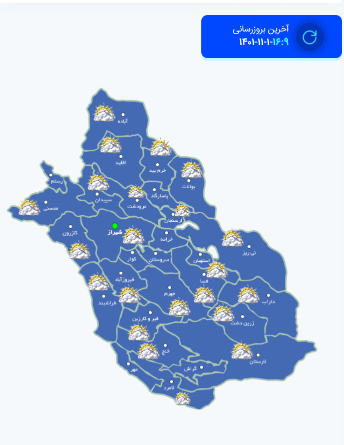 نقشه هواشناسی بعداز ظهر 3 بهمن فارس