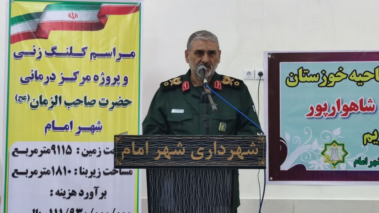 سردار سرتیپ حسن شاهوارپور روز چهارشنبه در آیین آغاز عملیات ساخت مرکز درمانی حضرت صاحب الزمان (عج) شهر امام دزفول در تالار فردین با تبریک ولادت با سعادت مهدی موعود (عج) افزود: ممکلت ما بر مبنای رویکرد ولایت و امامت پایه گذاری شده و به برکت آن بعد معنوی، استقلال و اقتدار نیز شکل گرفت و شخصیت ملت ایران به دنیا معرفی شد.