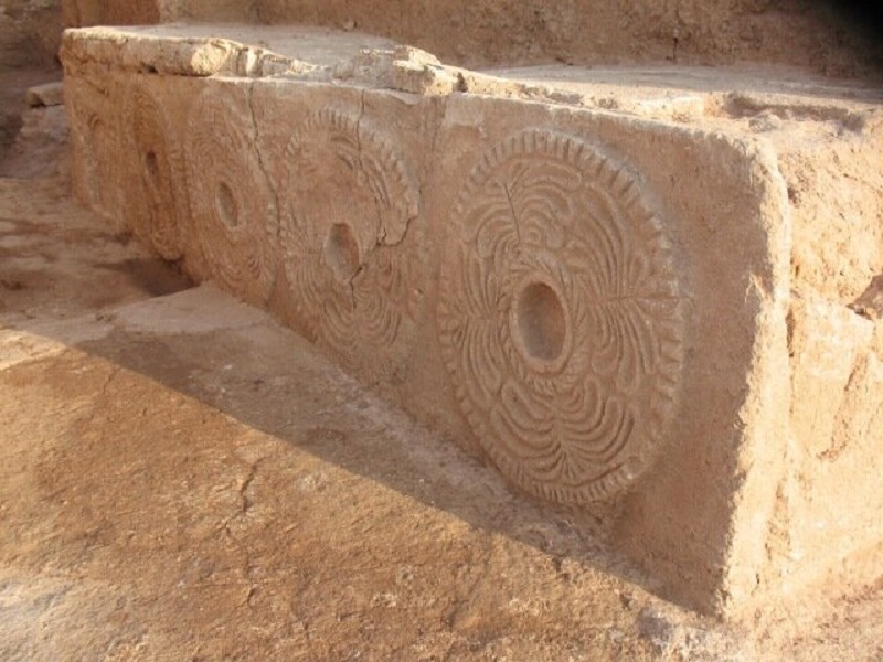وی به کشف تعدادی گچ‌بری با نقش نخل، چاه آب به عنوان نماد تجلی ایزد آناهیتا در آتشکده و تعدادی پایه آتشدان در این بنای تاریخی اشاره کرد و گفت: در بخشی از بنا سه پایه آتشدان گچی در راس یک سکوی تی(T) شکل قرار گرفته‌اند و با ادامه کاوش‌ها قطعه دیگر از پایه‌های گچی را پیدا کردیم که مشخص شد بخش بالای سه پایه گچی هستند. هر چند کارکرد آنها دقیقا مشخص نیست، اما برخی از باستان‌شناسان بر این عقیده‌اند که این پایه‌های گچی شاید محلی بوده که ظرف فلزی حاوی آتش مقدس روی آنها قرار می‌گرفته و یا اینکه روی این پایه‌ها یک تخت قرار داشته که جایگاه نشستن یک شخص مهم همچون پادشاه یا حاکم منطقه بوده است.